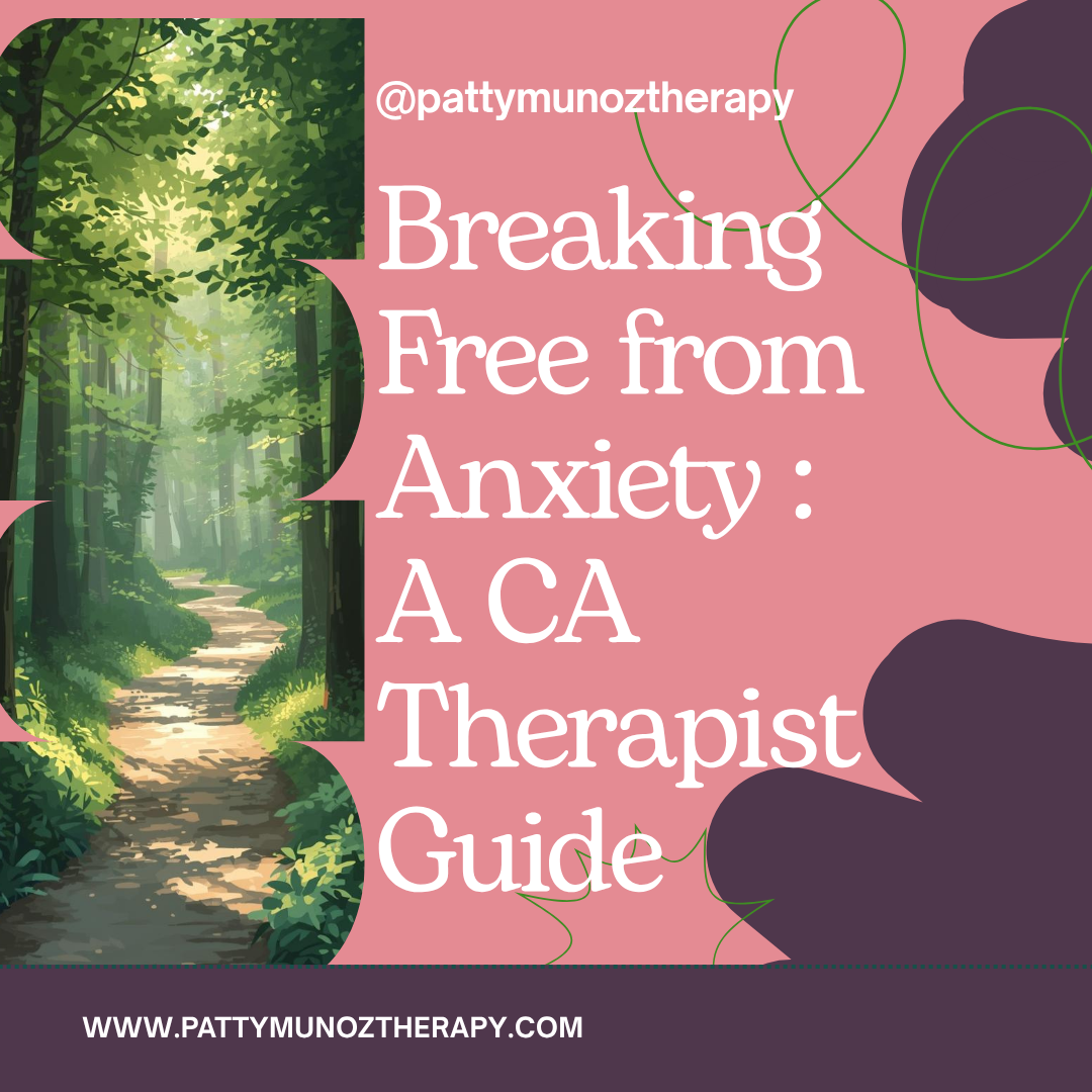 Breaking free from anxiety isn’t about eliminating it altogether; it’s about learning how to manage it and not let it control you. With patience, self-compassion, and the right strategies, you can reclaim your peace of mind. Remember, you’re not alone on this journey — and every step forward counts. We are here to help you manage anxiety. Contact us for your free 15 minute consultation (909)206-4613 . If you’re looking for an Anxiety Therapist in California who understands your unique needs, we are ready to help info@pattymunoztherpy.com or contact us here.